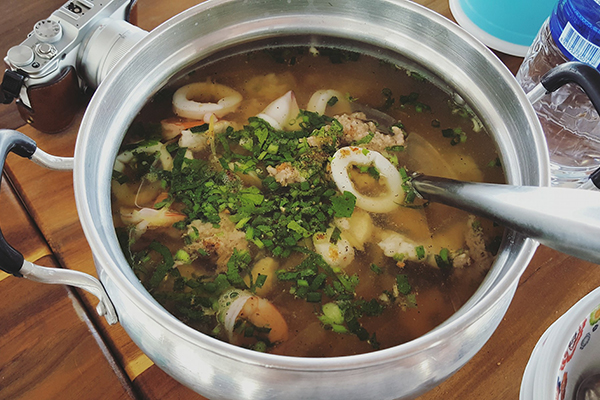 เริ่มต้นเช้าวันใหม่ด้วยอาหารที่เติมไม่อั้นเช่นเดิม โอ้ยย อยู่ดีกินดี มีข้าวต้มทะเลมาเป็นหม้อ