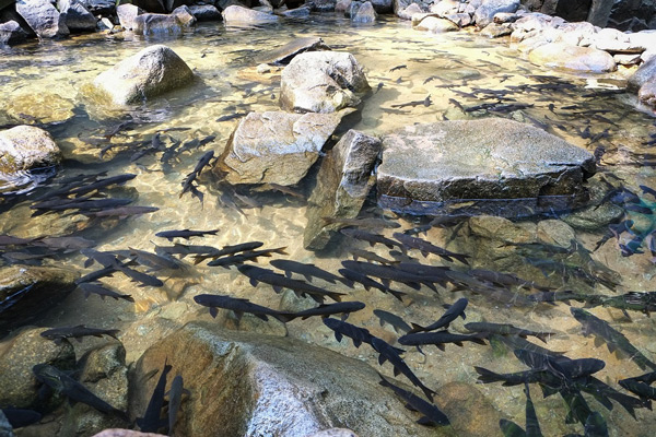 ระหว่างทางก็จะเริ่มเจอปลาพลวง ธรรมชาติค่อนข้างอุดมสมบูรณ์ ปลาเยอะมากๆ