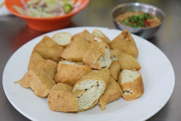 เที่ยงเล้วค่ะ ถึงเวลากินอีกแล้ว มุ่งหน้าเข้าตัวเมืองจันทบุรี ไปกินเย็นตาโฟชื่อดัง “เจ๊เพ็ญเย็นตาโฟ” ตอนแรกก็กล้าๆกลัวๆค่ะ เพราะบางรีวิวว่าไม่โอเค แต่ด้วยความอยากลอง มาทั้งทีเอาให้รู้กันไปเลย เริ่มจานแรก เต้าหู้ทอด โอ้ย อร่อย เต้าหู้กรอบนอกนุ่มใน จิ้มน้ำจิ้มรสชาดพอดี กินเท่าไหร่ก็ไม่พอ แต่ต้องหยุดไว้ก่อน เดี๋ยวอิ่มก่อนเย็นตาโฟ