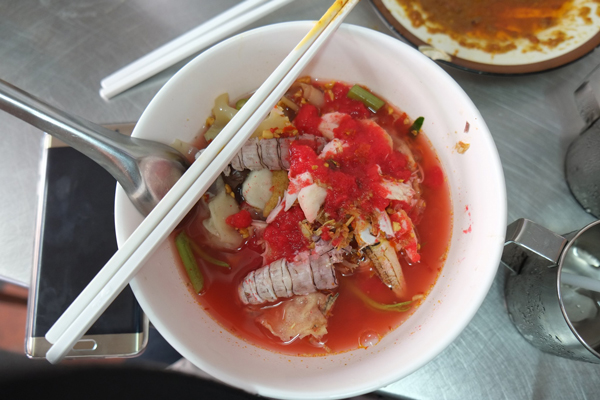 แล้วก็รอๆ รอค่อนข้างนาน อาจเป็นเพราะคนเยอะด้วยค่ะ เต็มทุกโต๊ะ รอเกือบๆ ชั่วโมง ก็ได้มา เราสั่ง เย็นตาโฟกั้งปูต้มยำ ธรรมดา ชามละ 100 บาท ตอนแรกไม่แน่ใจราคา เพราะชามใหญ่ ให้เครื่องเยอะมาก ปูกั้งจัดเต็ม มองหน้ากัน ชามละ 200 ป่าววะ แต่พอคิดตังชามละร้อยจริงๆ สรุปคือดีค่ะ คุ้ม อร่อย ปรุงเพิ่มนิดหน่อยแล้วแต่คนชอบ