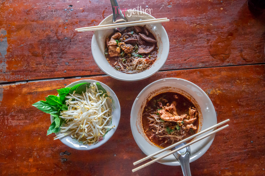 ด้วยความที่กลัวแน่นเกินจึงขอสั่งแต่ก๋วยเตี๋ยวแล้วกันนะ พอถึงคิวพี่เจ้าของร้านจะถามว่าเราจะนั่งด้านในหรือริมน้ำ ถ้าริมน้ำอาจจะต้องรอนานหน่อย เราเลยนั่งด้านในจากนั้นนั้นก็สั่งอาหาร รอไม่นานก็ได้ก๋วยเตี๋ยวน้ำตก ขอบอกว่ารสชาติเข้มข้นมาก แทบไม่ต้องปรุงเพิ่มเลย ค่าเสียหายก็ไม่แพง เพราะถ้วยละ 20 บาทเอง อิ่มจังตังค์เหลือ