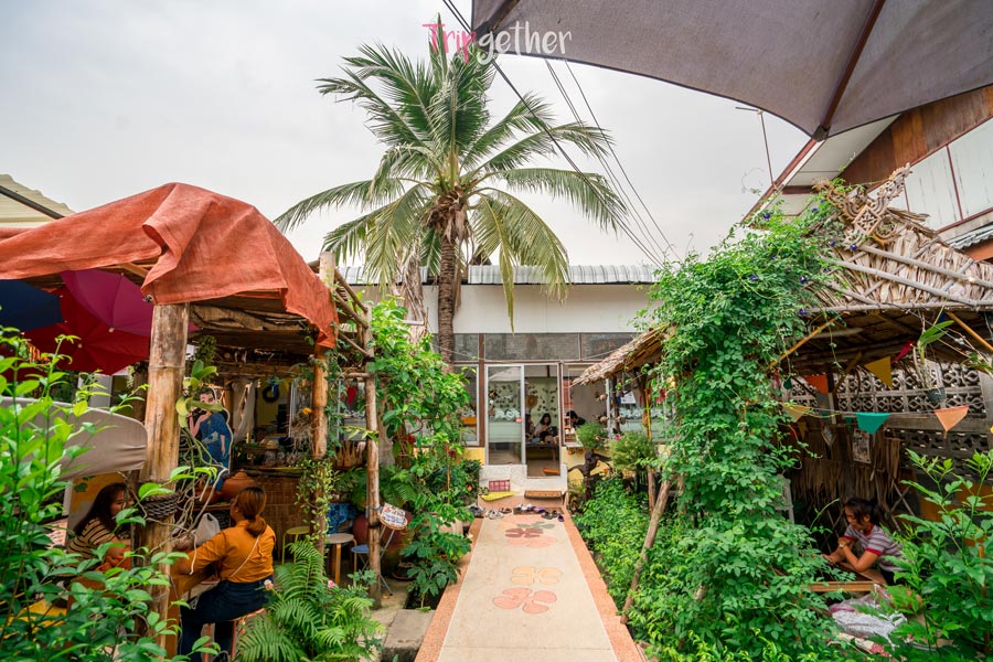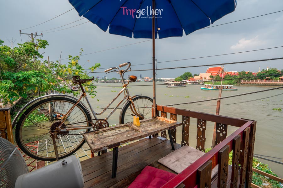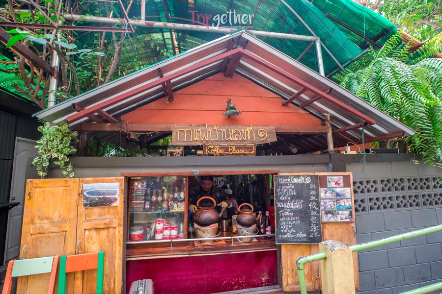 พอถึงถึงเกาะเกร็ด เราก็เป็นน้องหมาหอบแดดกันเลยทีเดียว นักท่องเที่ยวก็แบบว่าเยอะมาก ทั้งฝรั่ง คนจีน คนไทย เยอะไปหมด ร้อนจนขอหาร้านนั่งพักดื่มเครื่องดื่มเย็นๆ หน่อยนะ โดยที่เกาะเกร็ดมีร้านกาแฟน่ารักๆ ให้ได้นั่งห้อยขาได้ ถึงแล้วจ้าร้าน บ้านกาแฟหมายเลข 1