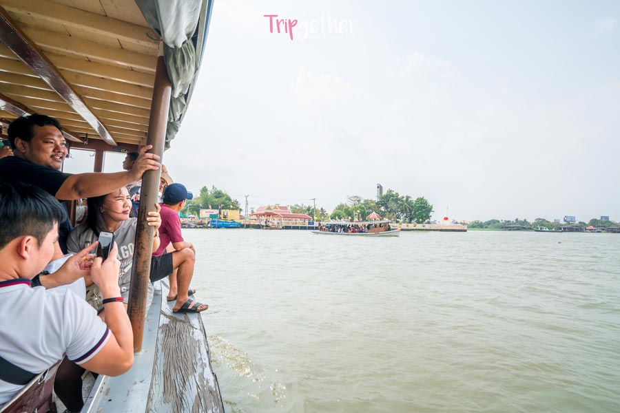 เราจะได้ขึ้นเรือข้ามฟากจากวัดไปเกาะเกร็ด ค่าเรือข้ามฟากเพียงแค่ 2 บาทต่อคนนะจ๊ะ โดยเราจะไปจ่ายอีกฝั่ง