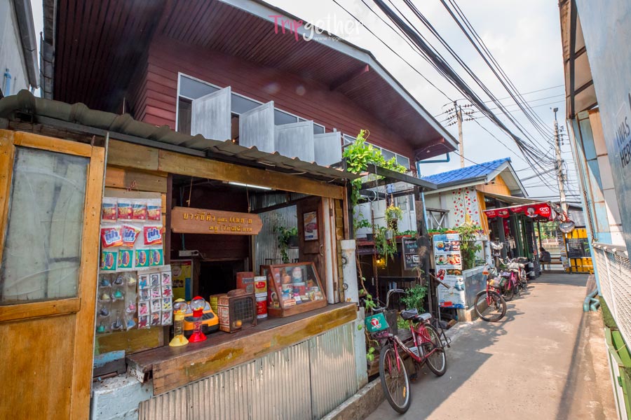 ร้านต่อมาคือร้าน ยกเย็นขึ้นบกซึ่งเดินเลยกันมานิดหนึ่งก็จะเจอร้าน หน้าร้านถูกตกแต่งไว้ได้คลาสสิก มีกลิ่นอายวินเทจๆ โดยทำเหมือนร้านโชห่วยสมัยก่อน