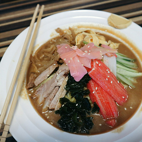 ที่เราเลือกทานวันนี้มี 2 เมนู อย่างแรก “บะหมี่เย็น” ราคา 160 บาท น้ำซีอิ๋วเค้าหอมอร่อยดีค่ะ เดินมาร้อนๆ กินบะหมี่เย็นรู้สึกว่าช่วยได้เหมือนนะคะ