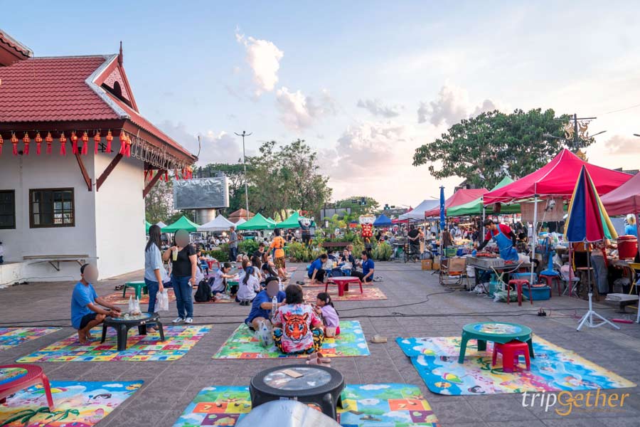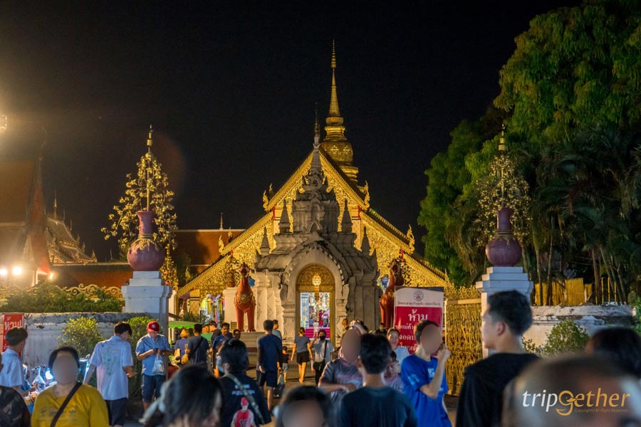 นอกจากได้อิ่มท้อง ยังได้ชมความงามของวัดพระธาตุหริภุญชัยยามค่ำคืนที่สวยสงบไปอีกแบบ และแน่นอนว่าได้ของฝากติดไม้ติดมือกลับบ้านด้วยนะ