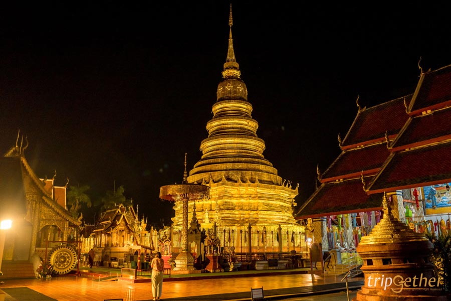 เมื่อมาถึงลำพูนอีกจุดหมายสำคัญที่ไม่ควรพลาดคือ วัดพระธาตุหริภุญชัยวรมหาวิหาร วัดเก่าแก่คู่บ้านคู่เมืองที่มีอายุยาวนานเกือบพันปี ตั้งอยู่ใจกลางเมืองแบบที่ถนนล้อมรอบทั้งสี่ด้าน