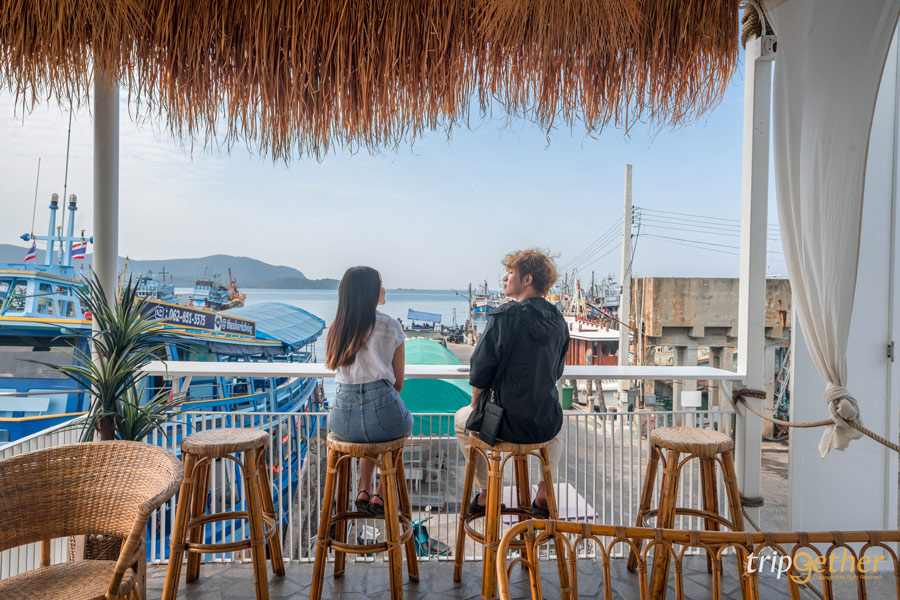 หลังจากอิ่มเอมกับทะเลใสๆ เรากลับเข้าฝั่งแล้วแวะต่อที่ เดอะชาร์คคาเฟ่ (The Shark Cafe) คาเฟ่วิวทะเลสุดชิลล์ ที่มองเห็นเรือประมงสีสันสดใสเรียงราย เหมือนงานประกวดเรือเลยทีเดียว ทำให้เรารู้สึกว่าได้ใกล้ชิดกับวิถีชีวิตชาวประมงสุดๆ