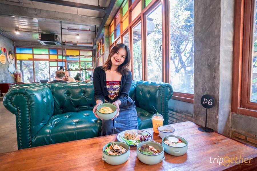 เดินเล่นถ่ายรูปจนพอใจ เราเลยแวะมาฝากท้องที่โซนร้านอาหารและร้านกาแฟ นั่งพักชิลล์ๆ ในส่วนของเมนูอาหารบอกเลยว่าอร่อยเด็ดทุกอย่าง อิ่มฟินสุดๆ