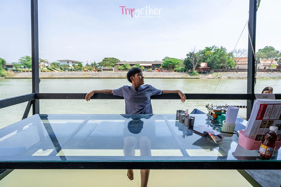 และเทอเรสกว้างริมน้ำที่มาพร้อมกับโต๊ะกระจกให้คุณได้นั่งห้อยขากันแบบชิลล์ๆ