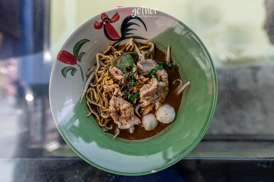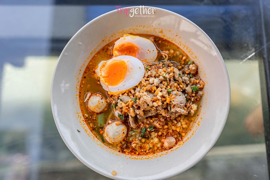 Recommend: ก๋วยเตี๋ยวเรือ (กลาง) 35 บาท, ก๋วยเตี๋ยวไข่ยางมะตูม 50 บาท, ส้มตำทอด 80 บาท