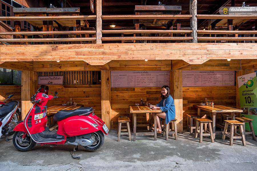 โดยชั้นแรกจะอยู่ติดริมถนน มีมุมส้มตำและขนมไทยหอมๆ อย่างเมนูรวมมิตร ให้คลายความเหนื่อยล้าจากการเดินทางมีโต๊ะให้นั่งพัก