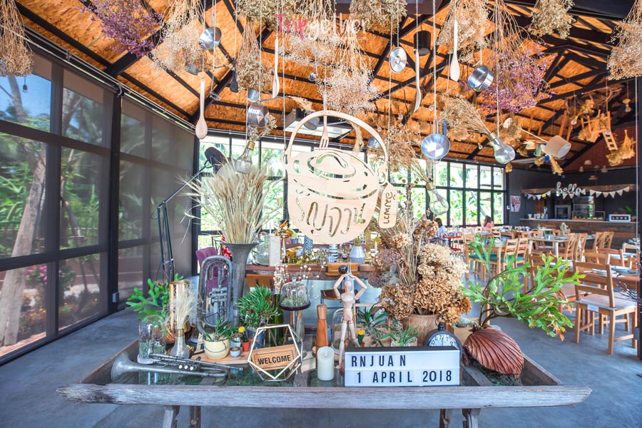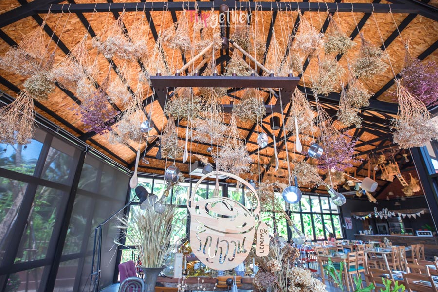 มุมถ่ายรูปน่ารักๆ เน้นการตกแต่งด้วยดอกไม้แห้ง และอุปกรณ์การทำครัว
