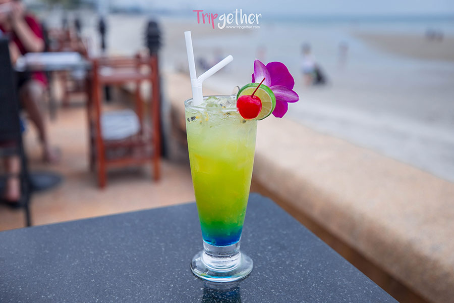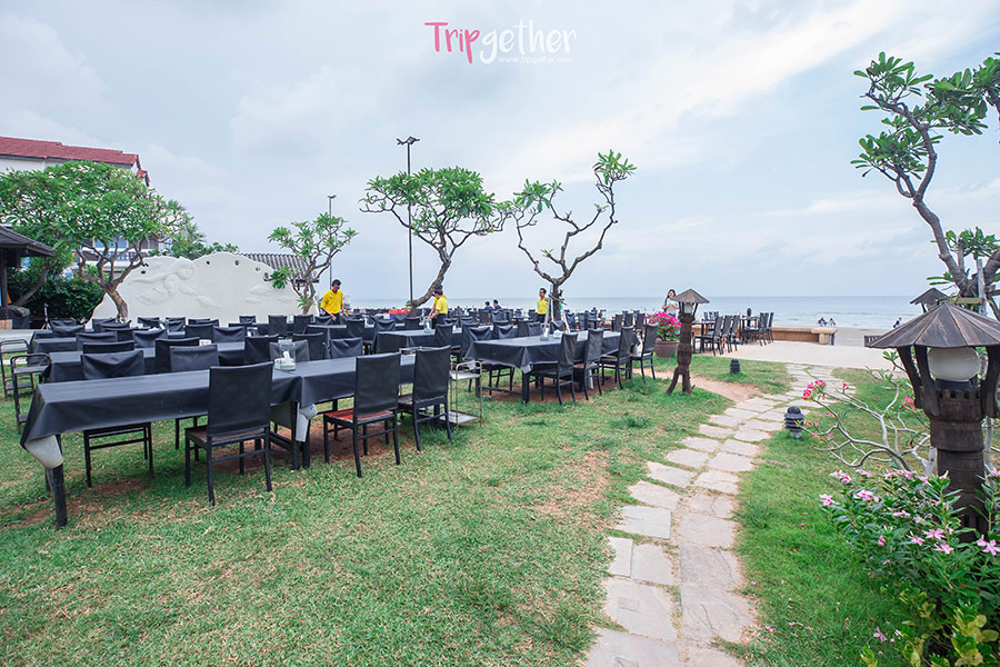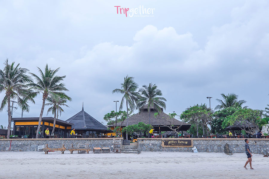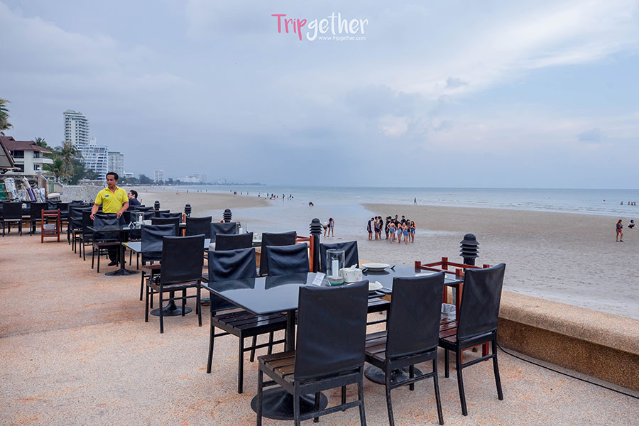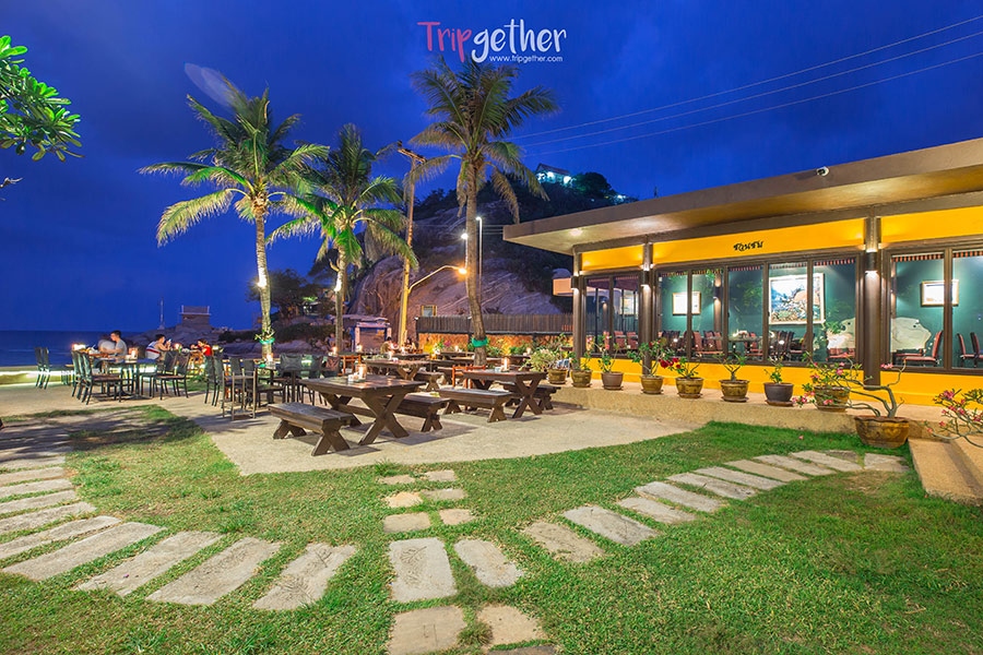 เมื่อเดินเข้ามาด้านในจะมีที่นั่งให้เลือกทั้งแบบ Indoor และ Outdoor สำหรับใครที่อยากชิลล์เอ้าท์นั่งรับลมเย็นๆ ริมทะเลก็ต้องไม่พลาดที่นั่งด้านนอกที่มีให้เลือกหลายมุม และที่สำคัญบริเวณร้านยังสามารถมองเห็นพระพุทธรูปขนาดใหญ่ของวัดเขาตะเกียบได้อย่างสวยงามอีกด้วย