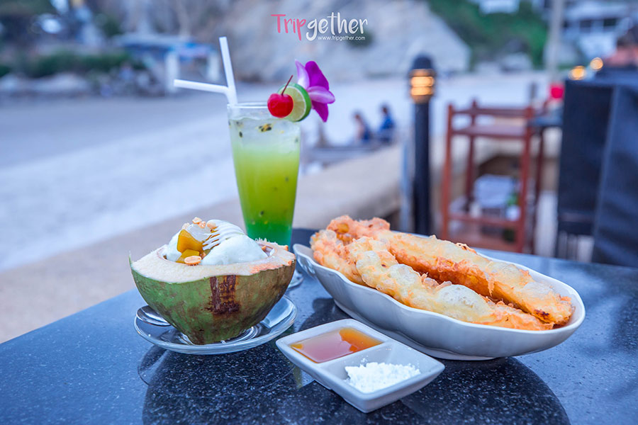 กล้วยหอมทอด 150 บาทและไอศกรีมกะทิสดในลูกมะพร้าว 110 บาท
