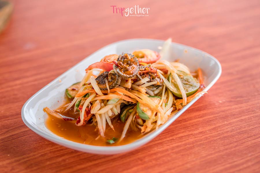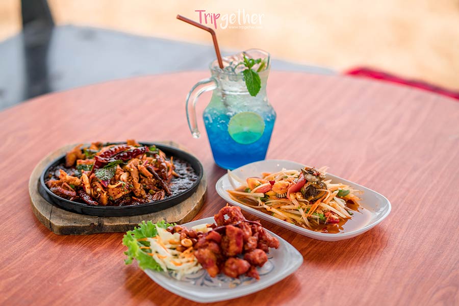 โดยมีเมนูแนะนำอย่าง ตำหอยแครง, น้ำตกกระทะร้อน, แหนมกระดูกอ่อน และเครื่องดื่มชื่นใจอย่างบลูฮาวาย