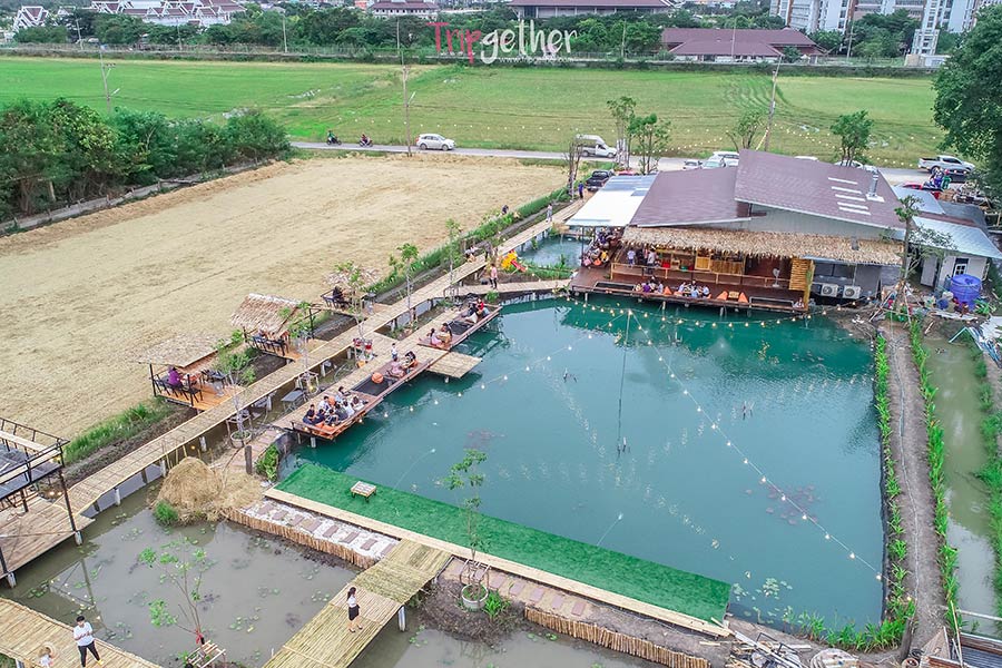 เช็คอินร้านน้องใหม่! แซ่บนัว@ศาลายา กินข้าว ชมวิวกลางทุ่งนา ริมสระน้ำสีมรกต