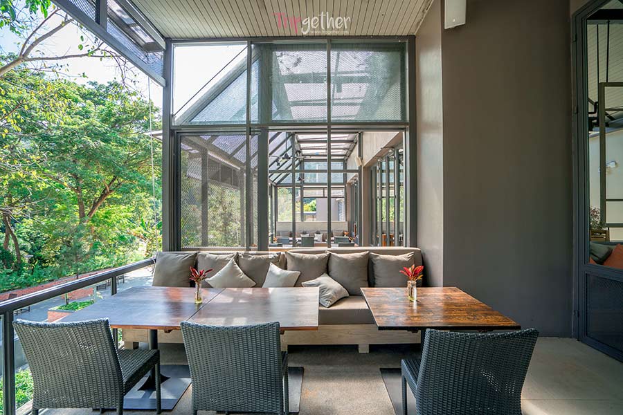 เมื่อเดินถัดเข้ามาด้านในจะมีโซนที่นั่งให้เลือกทั้งแบบ Indoor และ Outdoor
