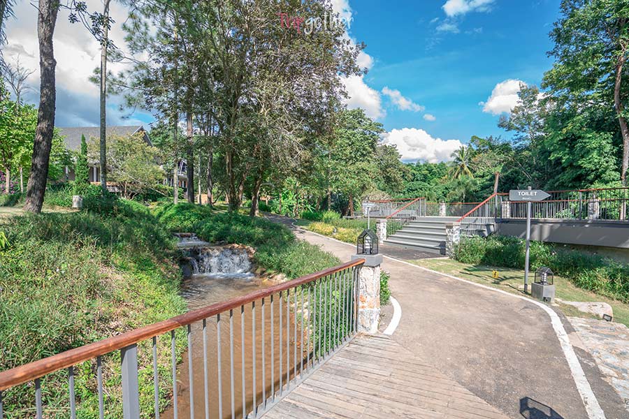 ภายในพื้นที่ของโรงแรมมีลำธารธรรมชาติไหลผ่าน สามารถเดินเล่นและนั่งชิลล์ๆ อ่านหนังสือเล่มโปรดได้จนจบเล่มแน่นอน เพราะบรรยากาศเงียบสงบเหมาะแก่การมาพักผ่อนเป็นที่สุด