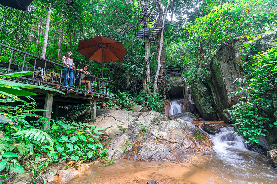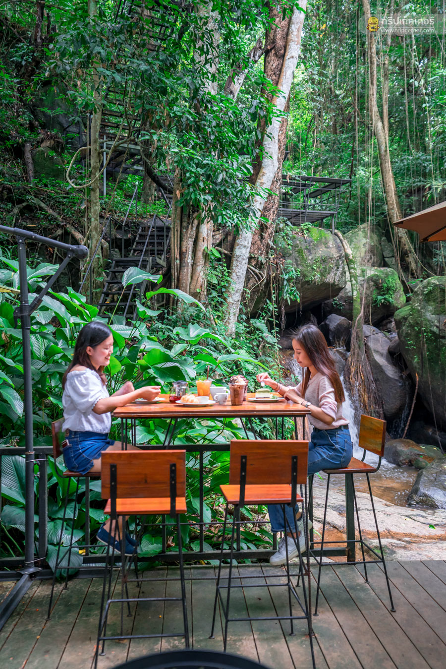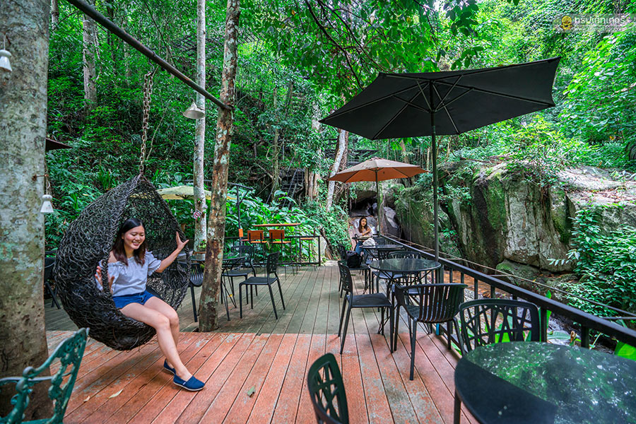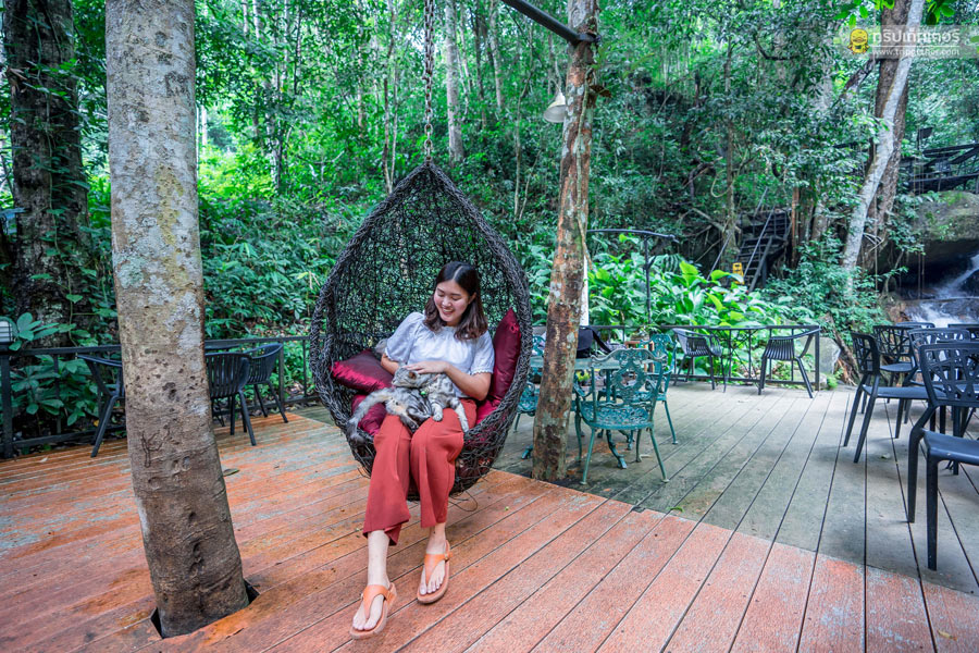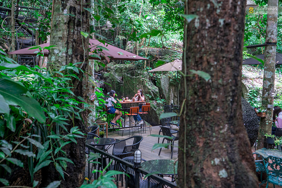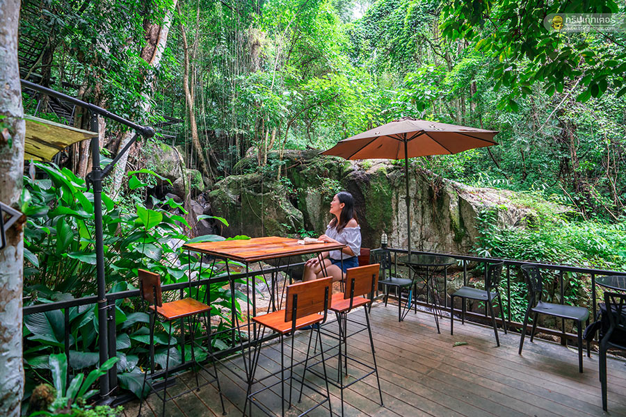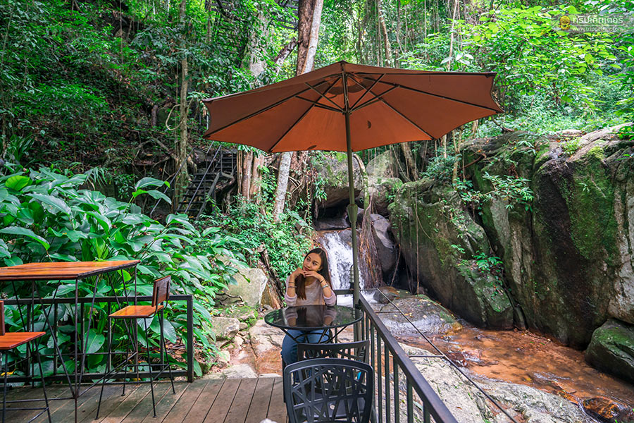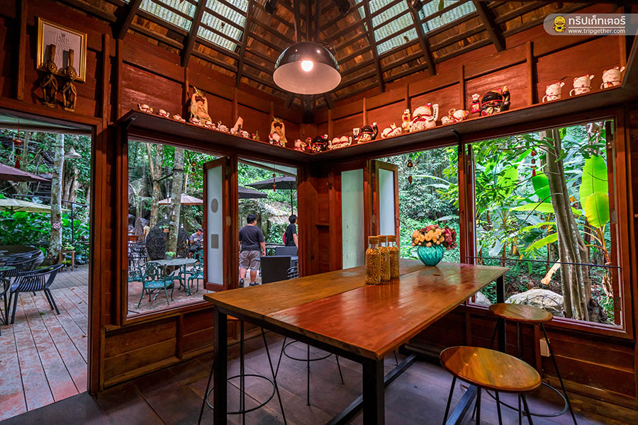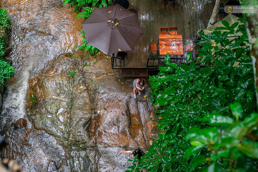 นอกจากจะได้มานั่งจิบชา ชิมกาแฟที่ร้านแล้ว ที่นี่ยังมีมุมถ่ายรูปอีกเพียบไม่ว่าจะเป็นโซนริมน้ำตก