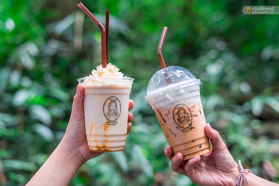 นมคาราเมลปั่น 95 บาท และชาไทยเย็น 85 บาท