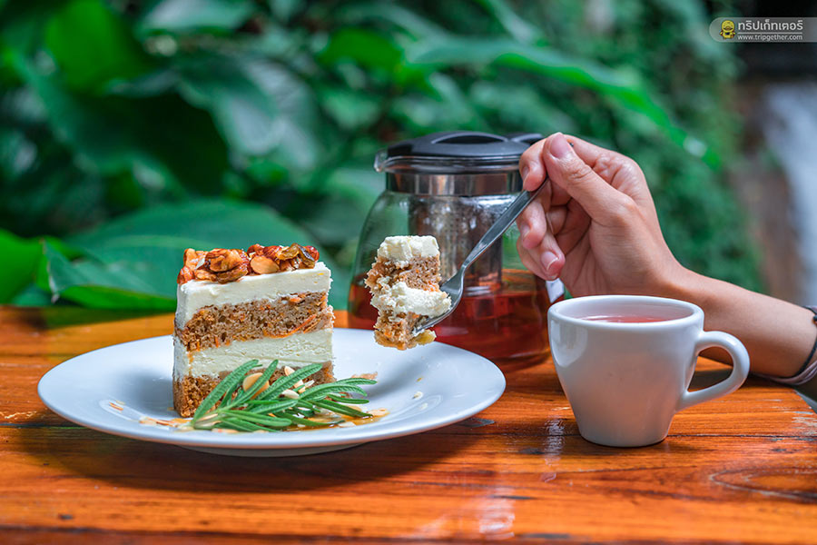 แครอทเค้ก 120 บาท กินคู่กับชาชาพีชและเสาวรสร้อน