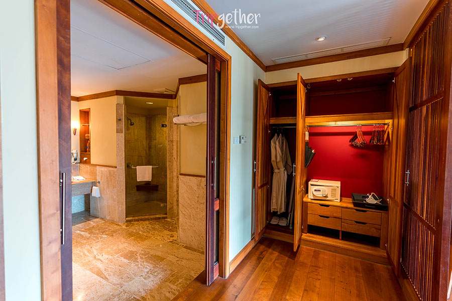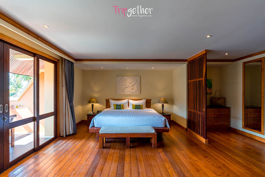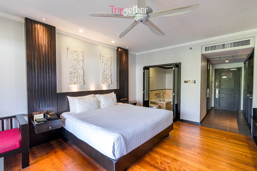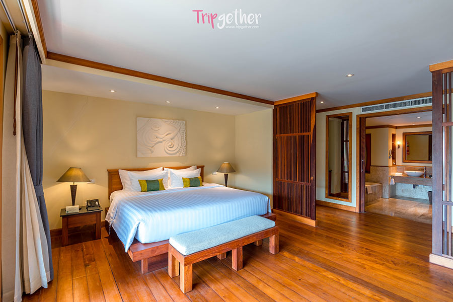 ถัดไปไม่ไกลจะเป็นห้อง Deluxe Ocean Facing Premium Wing ห้องพักดีไซน์หรูหรา เมื่อเปิดประตูเข้าจะมีเตียงคิงไซส์ตั้งอยู่กลางห้อง เมื่อมองเลยไปเบื้องหน้าจะเห็นวิวสวยของสระว่ายน้ำ ที่ช่วยให้คุณได้รู้สึกผ่อนคลายตลอดการเข้าพักกันเลยทีเดียว