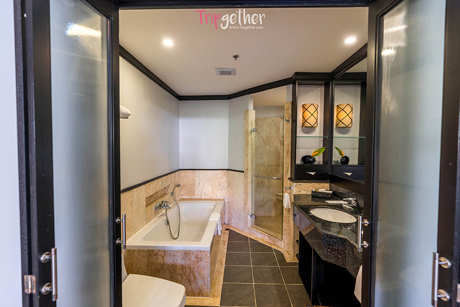 ห้องน้ำครบครันด้วยสิ่งอำนวยความสะดวก แบ่งโซนเปียกและแห้งได้เป็นอย่างดี มีอ่างอาบน้ำให้คุณได้แช่น้ำผ่อนคลายกันอีกด้วย
