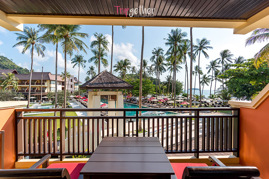 ระเบียงส่วนตัวเห็นวิวสระว่ายน้ำ