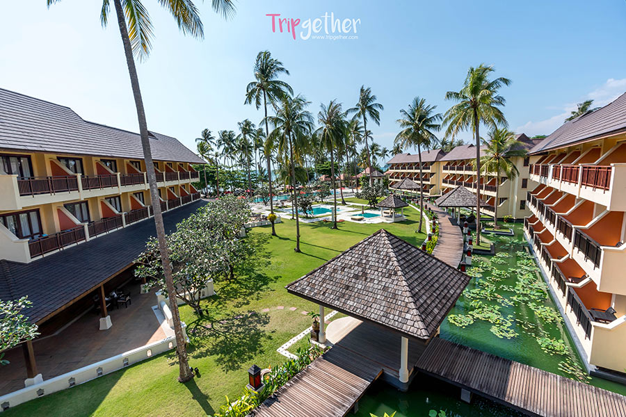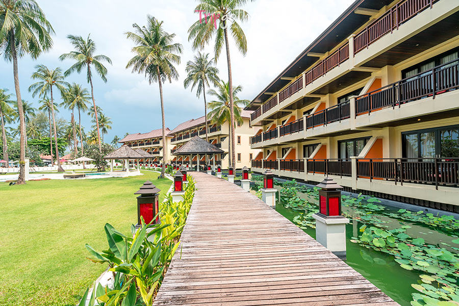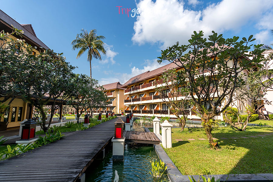 ทางเดินภายในรีสอร์ทมีสะพานไม้เชื่อมต่อไปยังจุดต่างๆ