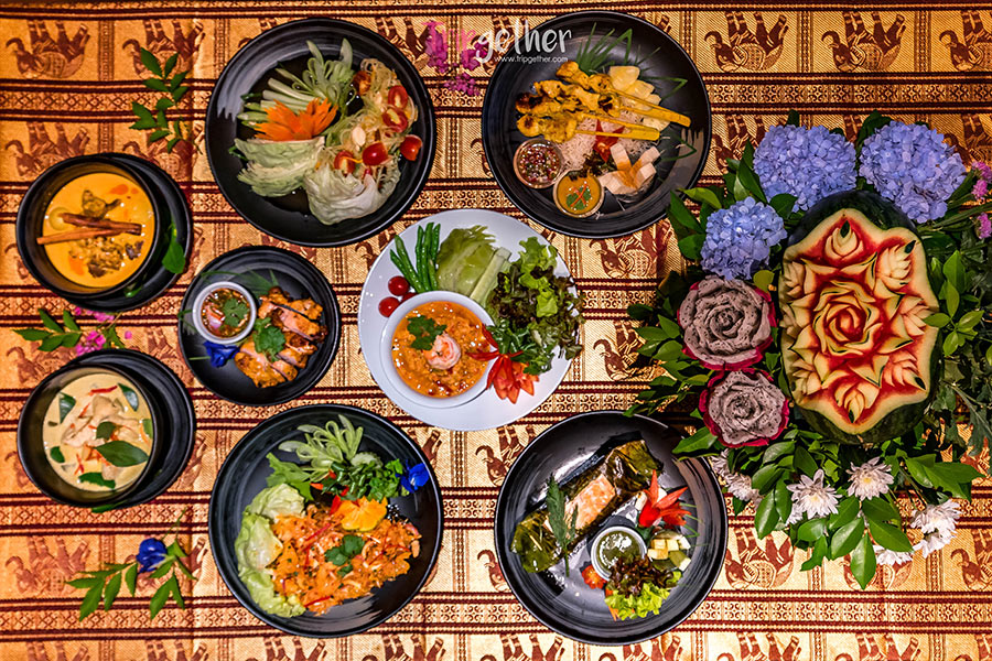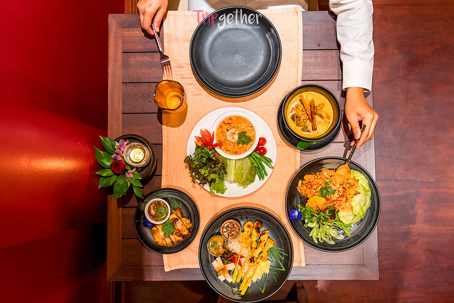 โดยมีเมนูแนะนำเป็น สะเต๊ะไก่ น้ำพริกกุ้งสด ส้มตำ ไก่ย่าง ยำส้มโอ แกงเขียวหวานไก่ มัสมั่นเนื้อ พล่าแซลม่อนห่อใบตองพับ และตบท้ายด้วยขนมหวานตามฤดูกาล ข้าวเหนียวมะม่วง ชีสเค้กมะม่วง และที่สำคัญสามารถเติมข้าวได้ไม่อั้น แถมยังมีให้เลือกถึง 3 แบบด้วยกันคือ ข้าวขาว ข้าวกล้อง และข้าวใบเตย