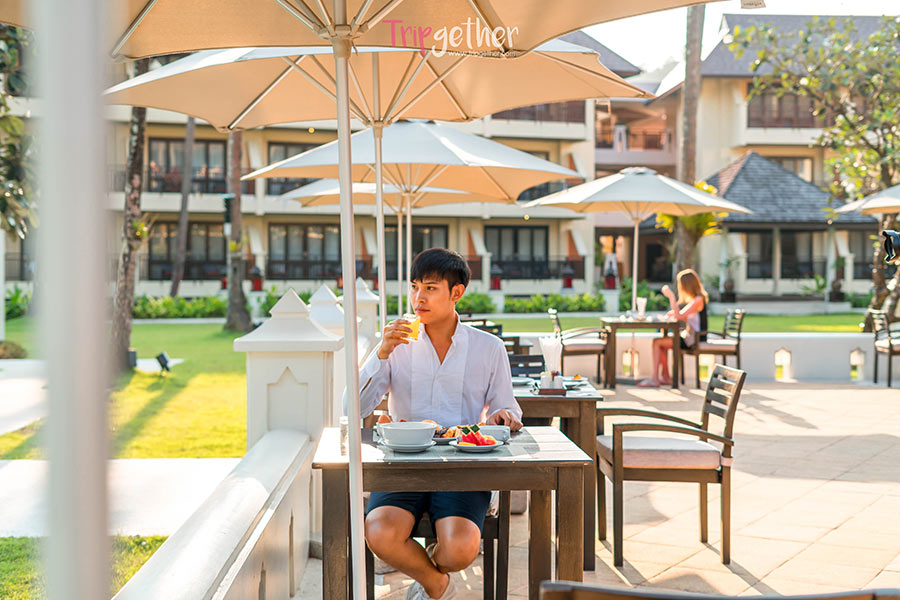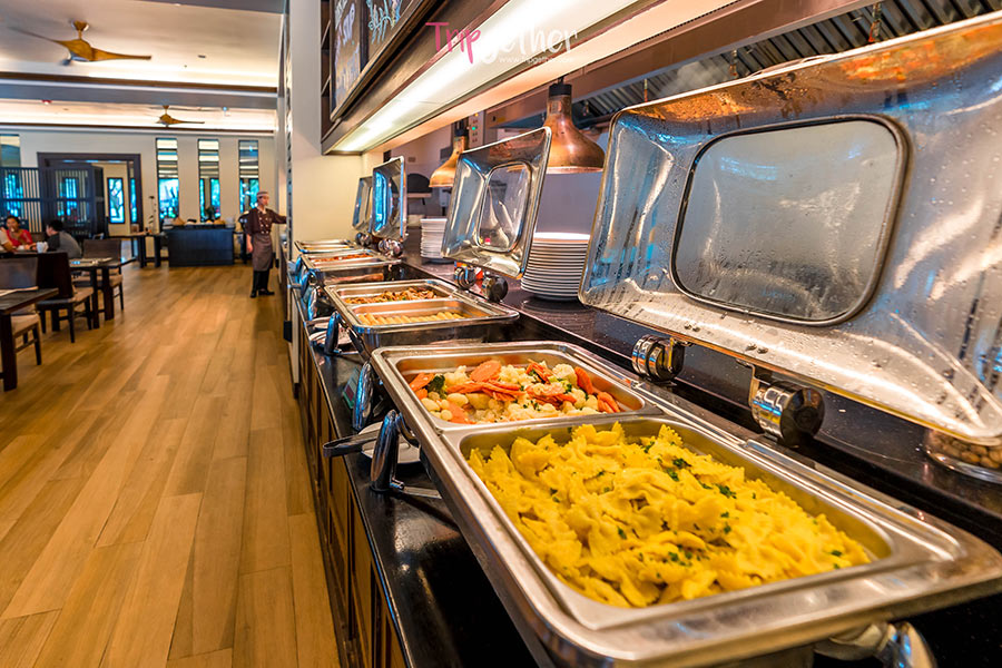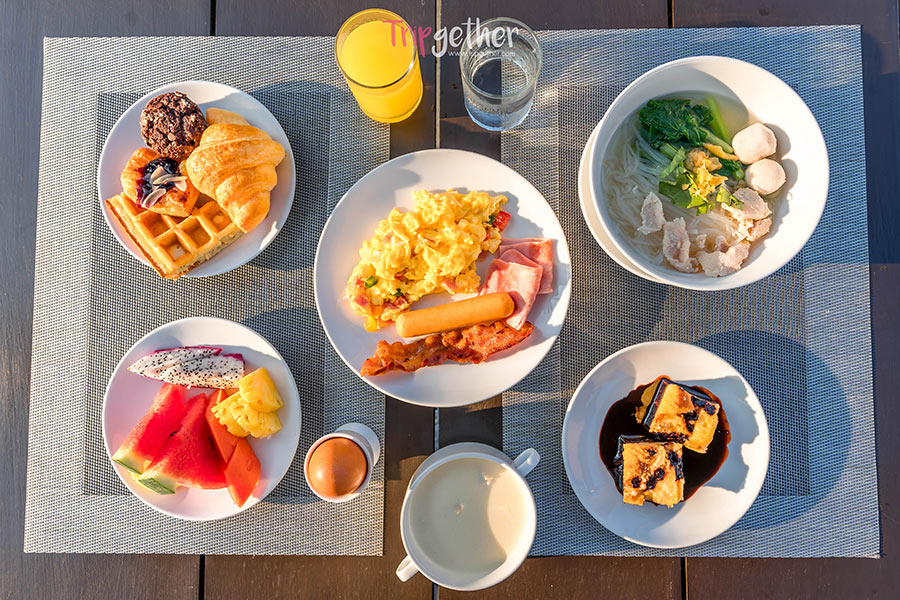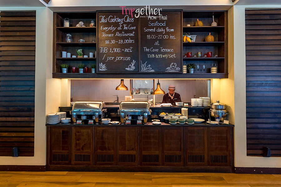 ส่วนอาหารเช้าที่นี่จะจัดเป็นไลน์บุฟเฟ่ต์ เปิดให้บริการตั้งแต่ 6.00 – 10.00 น. ที่ห้องอาหาร The Cove Terrace เมนูอาหารก็มีให้เลือกรับประทานกว่า 50 รายการเลยทีเดียวทั้งเมนูอาหารไทย อาหารจีน และอาหารตะวันตก
