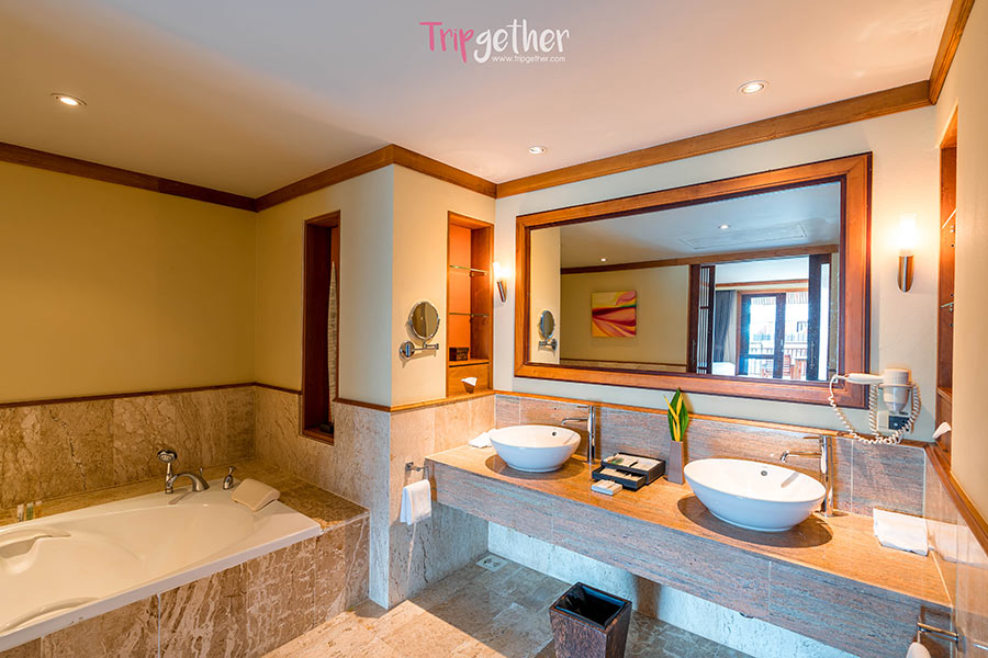 ห้องน้ำก็เพิ่มพื้นที่ใช้สอยให้กว้างขวางขึ้นกว่าเดิม มีอ่างอาบน้ำให้คุณได้แช่น้ำผ่อนคลาย แบ่งโซนเปียกและแห้งได้เป็นอย่างดี เพิ่มฟังก์ชั่นมุมอ่างล้างหน้าสำหรับคู่รักหรือครอบครัวให้สะดวกสบายยิ่งขึ้น