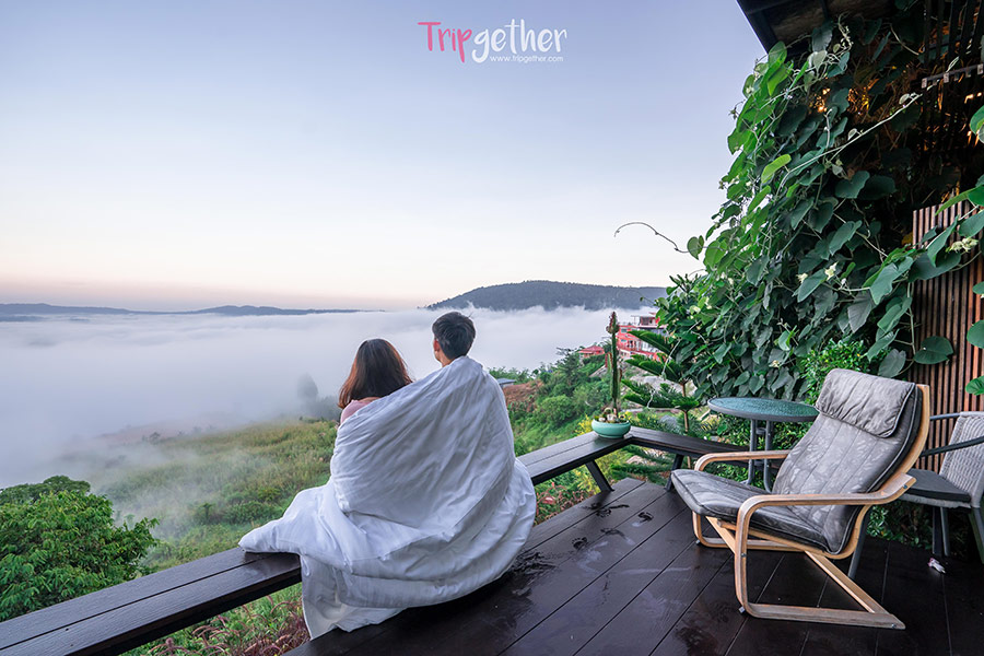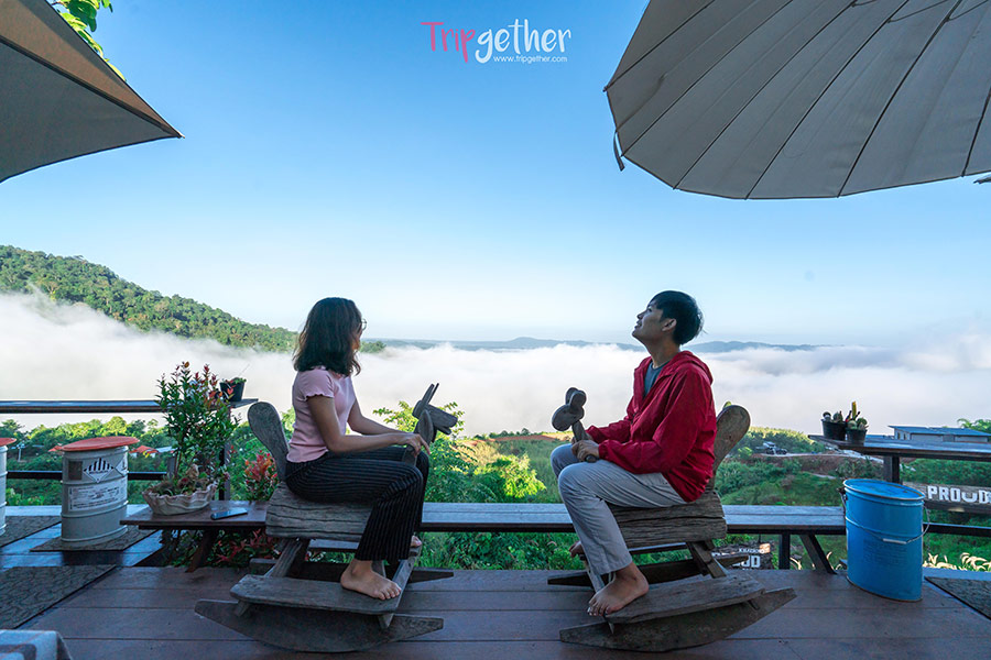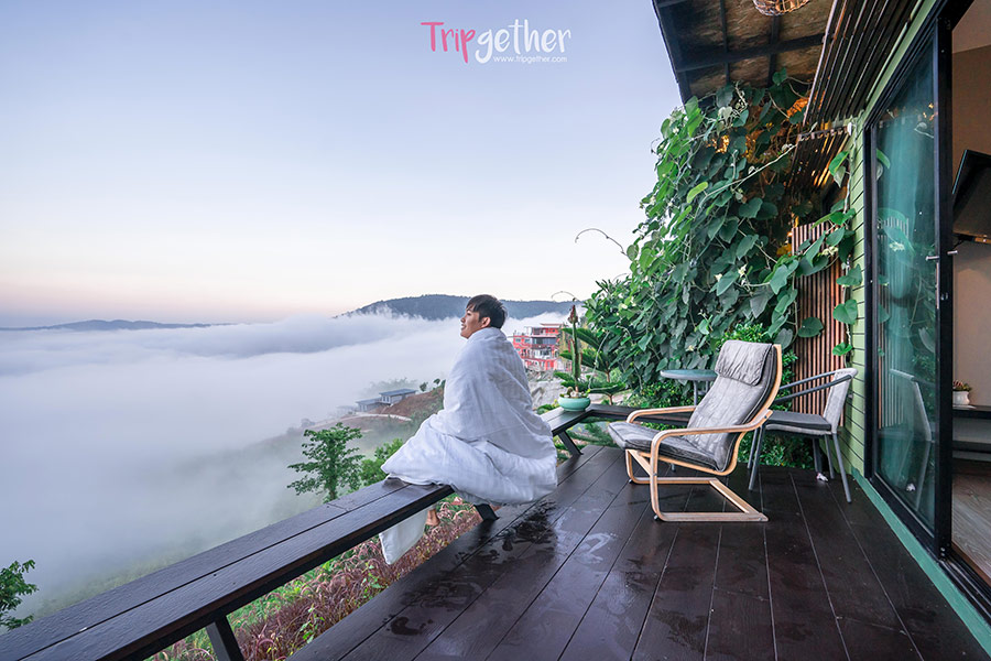 นั่งดูยอดเขาค้อและหมอกหน้าระเบียงบ้านพักแบบชิลล์ๆ