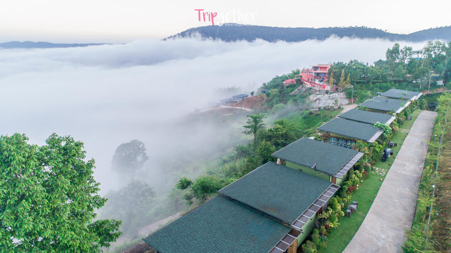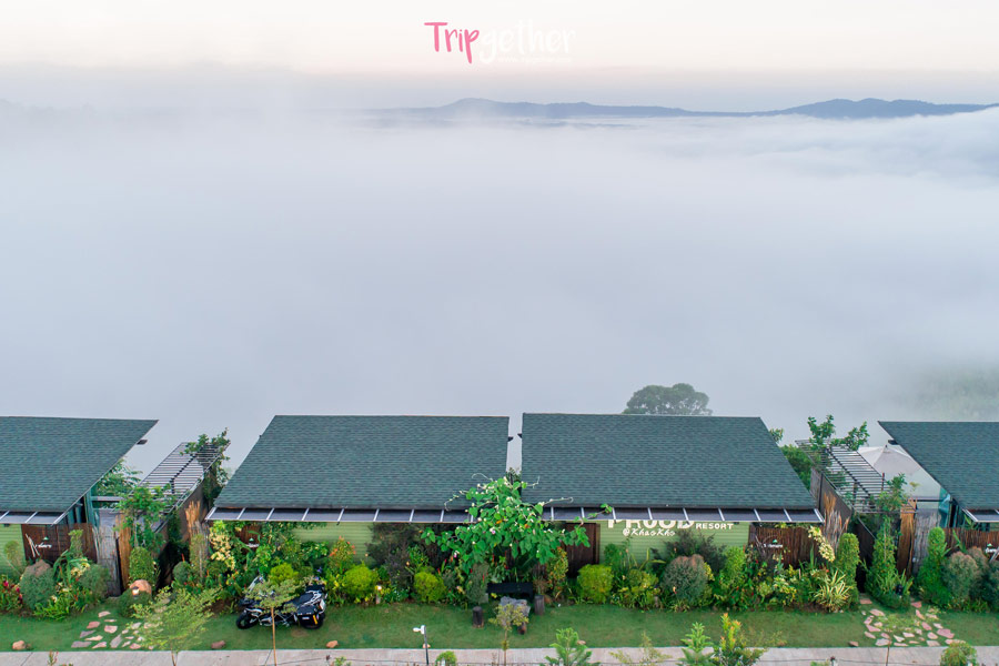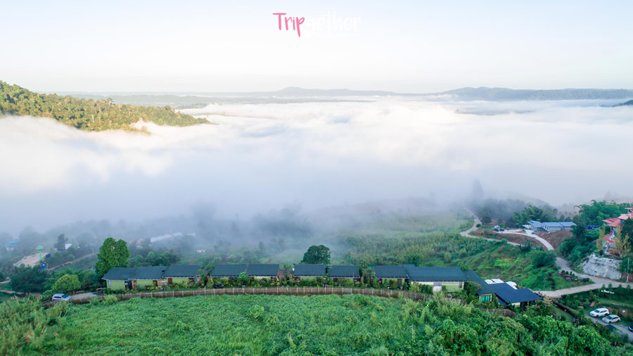 หมอกลอยท่วมรีสอร์ทในช่วงเช้า