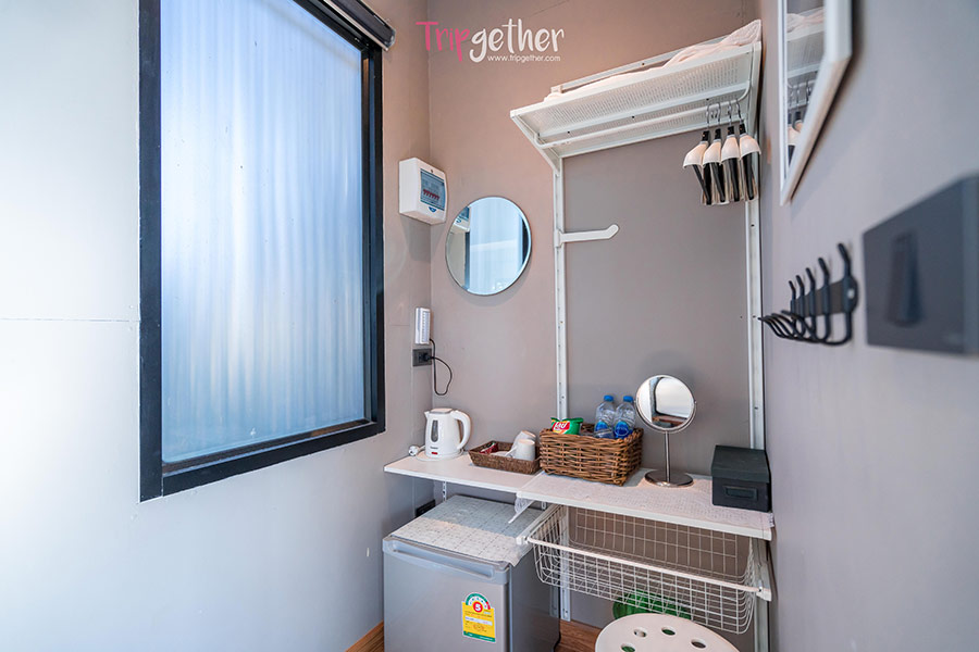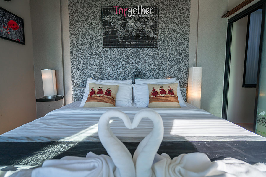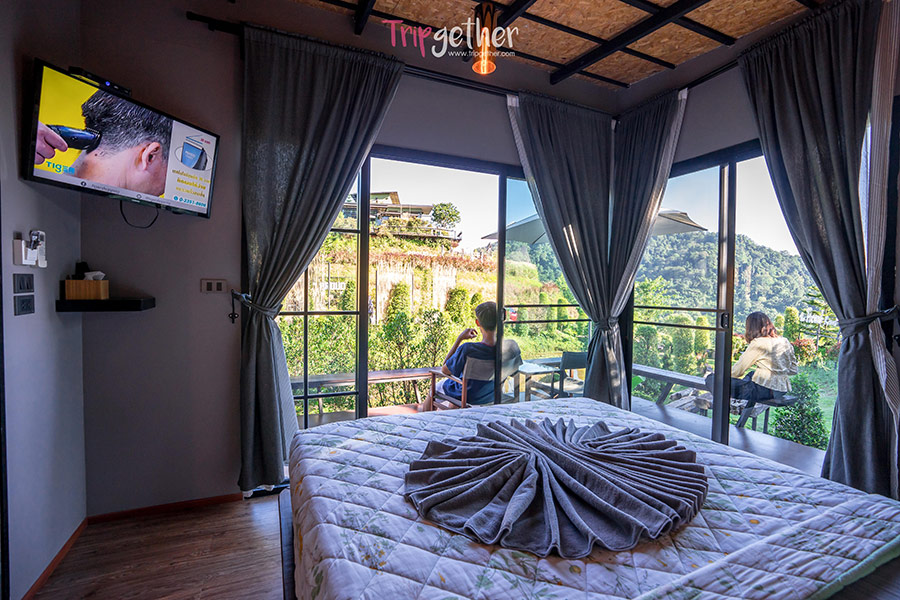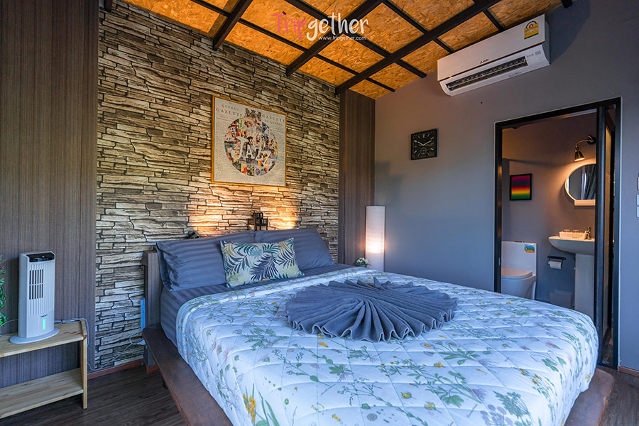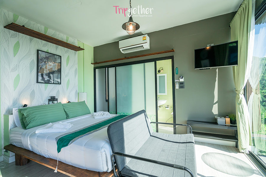 ห้องพักจัดแบ่งพื้นที่ได้เป็นอย่างดี มีระเบียงหน้าห้องพักให้คุณนั่งห้อยขาชมวิวกันแบบเพลินๆ ส่วนภายในห้องจะมีพื้นที่ค่อนข้างกระทัดรัด พอดีสำหรับผู้เข้าพัก 2 คน เหมาะกับคู่รักหรือเพื่อนสนิท ที่ต้องการพื้นทื่พักผ่อนแบบส่วนตัว