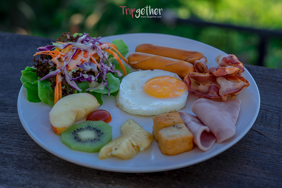 สำหรับมื้อเช้าทางรีสอร์ทก็มีให้บริการเป็นข้าวต้ม และอเมริกันเบรคฟาสต์ เปิดให้บริการตั้งแต่ 7.30 – 10.00 น.