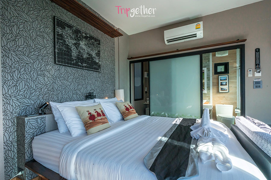 ภายในห้องพักจัดแบ่งพื้นที่ได้อย่างลงตัว ตกแต่งด้วยภาพถ่ายเท่ๆ มีสิ่งอำนวยความสะดวกอย่างดีครบครันทุกความต้องการอย่างแน่นอน