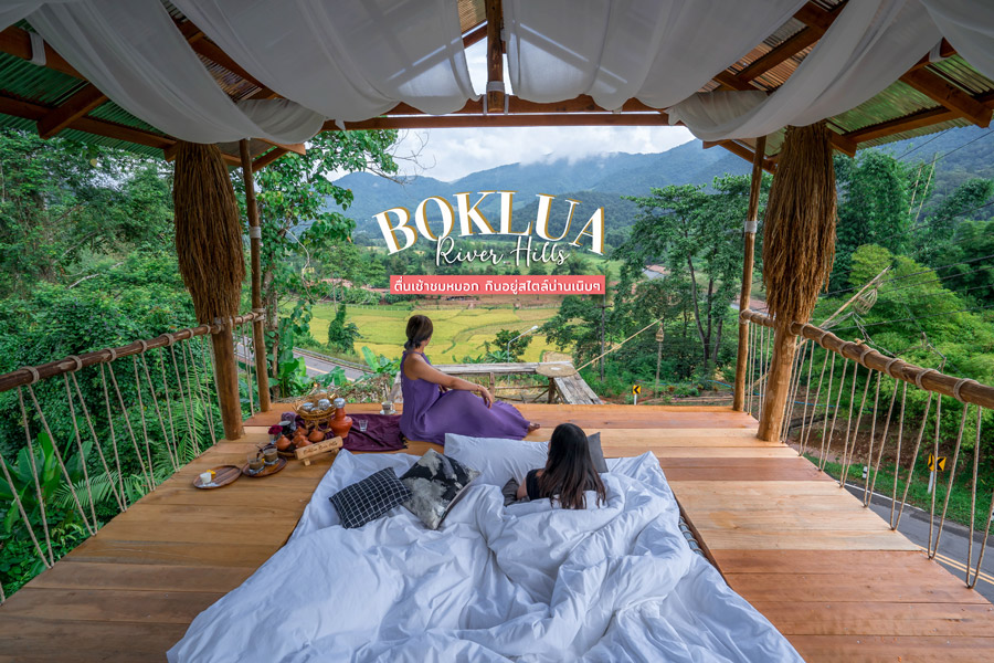 หน้าหนาวมาเยือนแล้ว ฤดูที่เหมาะแก่การออกเดินทางไปสัมผัสอากาศอันเย็นสบาย หลายคนเลือกที่จะขึ้นเหนือไปท้าลมหนาวกัน หากนึกไม่ออกว่าจะไปที่ไหนต้องลองไปน่านไง เขาว่ากันว่าน่านเป็นจังหวัดที่มีเอกลักษณ์ ไม่ว่าจะเป็นวิถีชีวิต ธรรมชาติ และอาหารการกิน ไปเที่ยวน่านหน้าฝนก็ฟิน ยิ่งหน้าหนาวยิ่งฟินสุดๆ วันนี้เราจึงมาแนะนำอีกหนึ่งที่พักใน อำเภอบ่อเกลือ จังหวัดน่าน ที่รับรองได้เลยว่าจะต้องเป็นหนึ่งที่พักในดวงใจของคุณเมื่อได้เข้าไปพักอย่างแน่นอน ที่นี่คือ บ่อเกลือ ริเวอร์ ฮิลล์ (Boklua River Hills) พื้นที่พักผ่อนที่จะมาเติมเต็มความสุขและความอบอุ่นให้กับคุณได้อย่างล้นปรี่