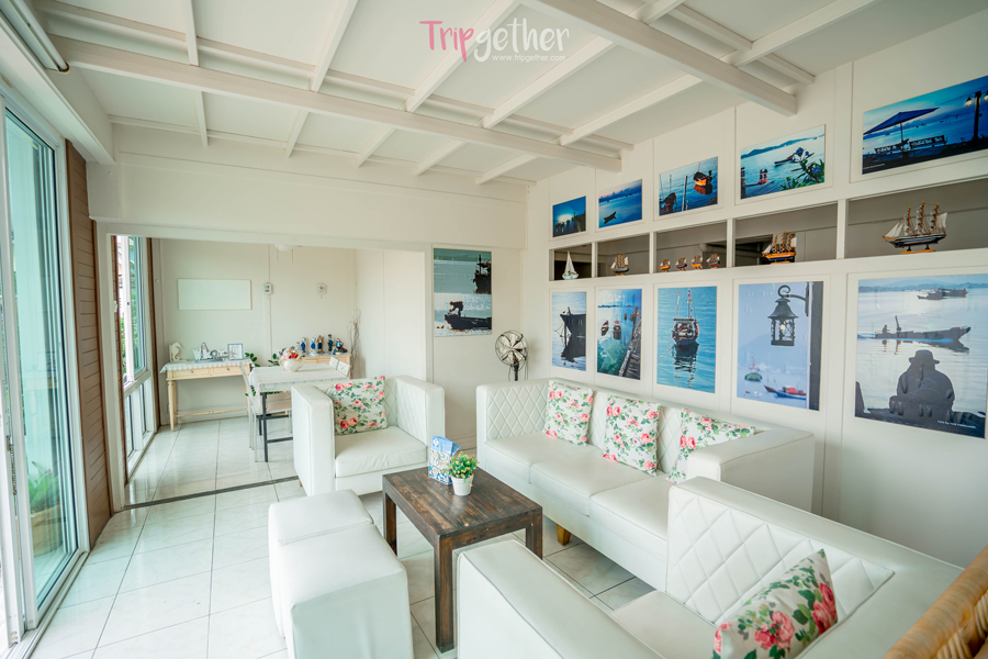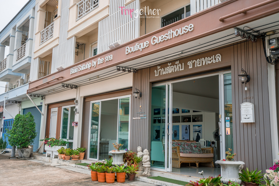 “บ้านสัตหีบ ชายทะเล” บ้านพักตากอากาศสุดชิลล์สไตส์วินเทจ ด้านหน้าเป็นอาคารพานิชย์ 3 ชั้นตกแต่งด้วยสีขาวพอเดินเข้ามาภายในเราจะพบกับล๊อบบี้เล็กๆ ให้ความรู้สึกเหมือนมาบ้านเพื่อน