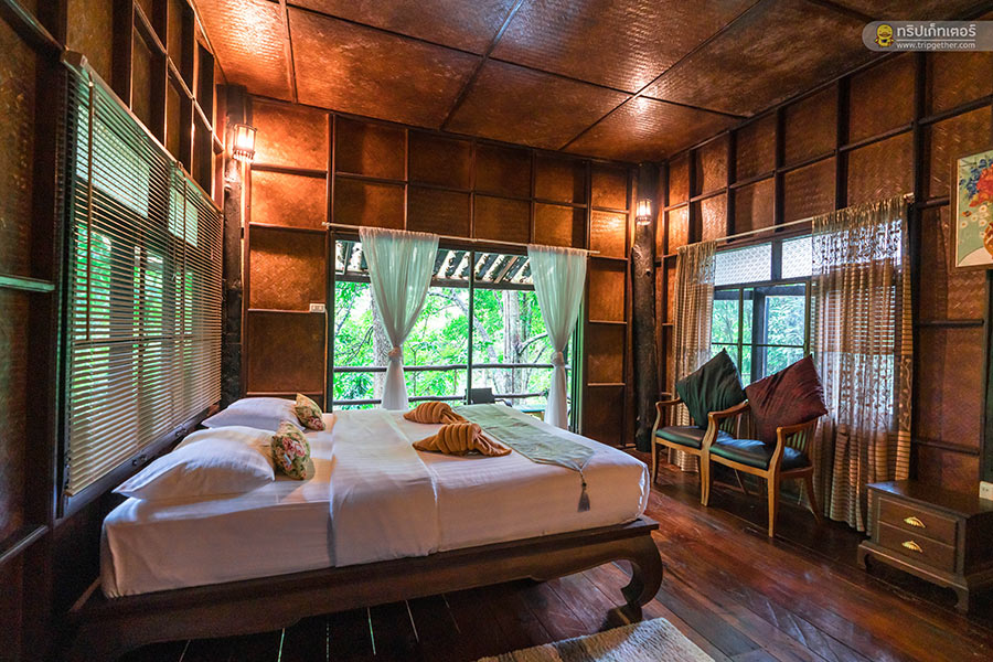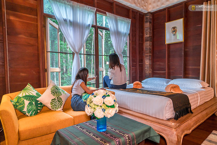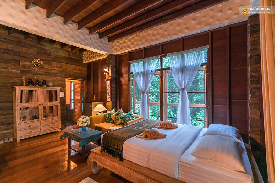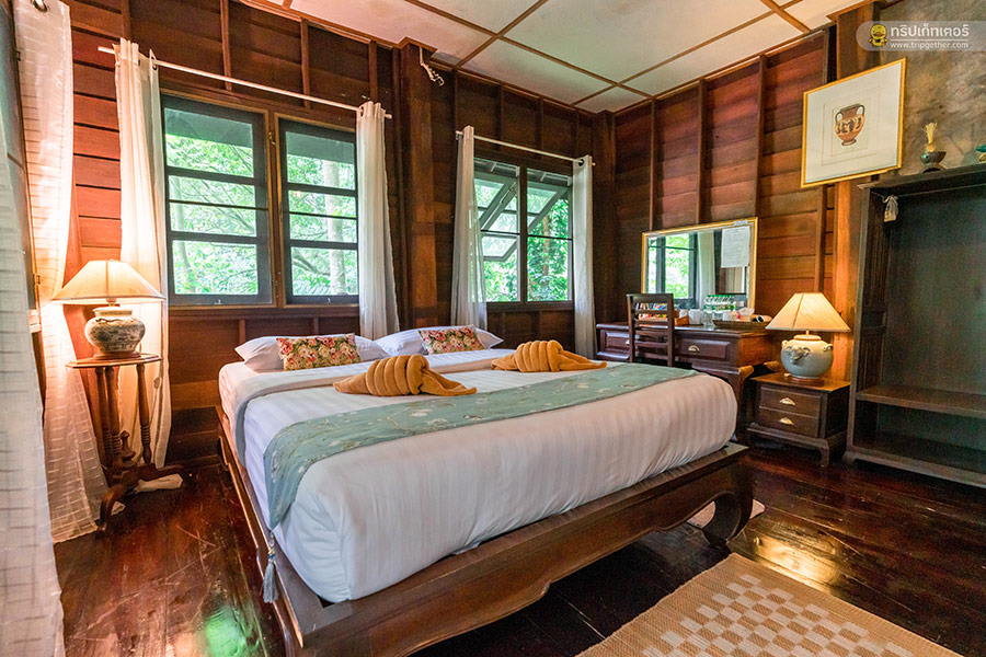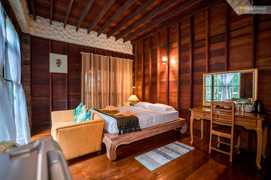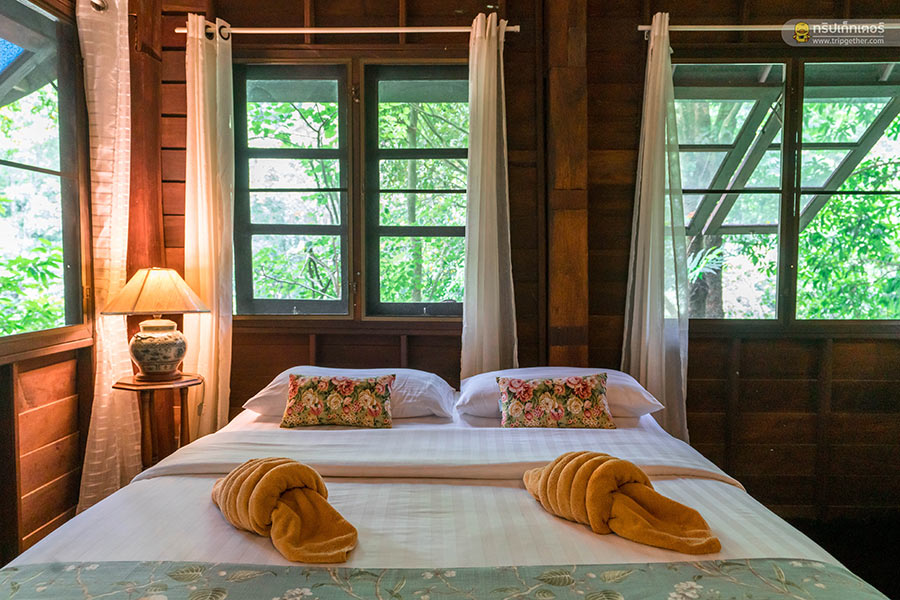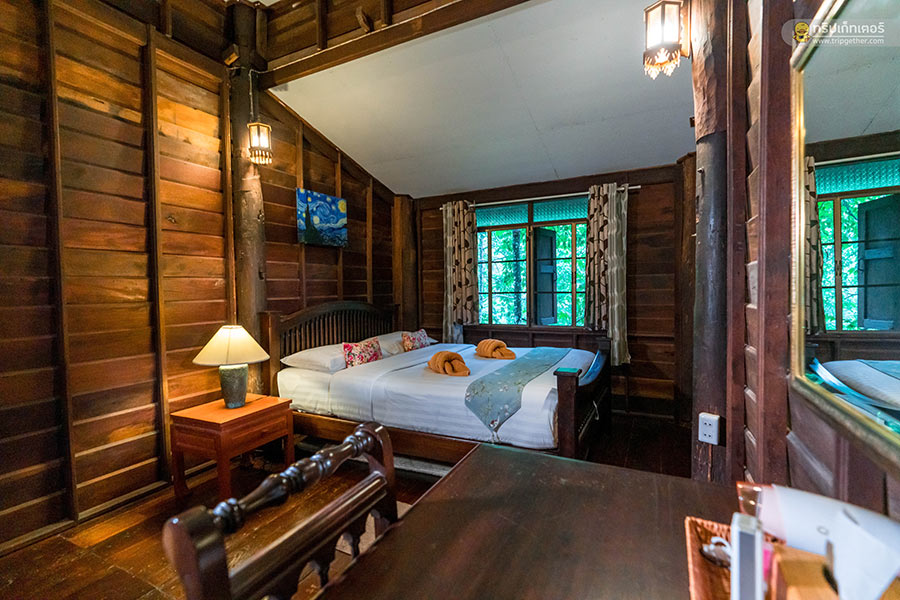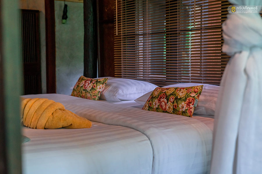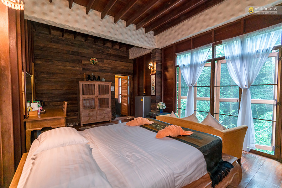 ภายในห้องพักตกแต่งได้อย่างดี มีที่นอนขนาดใหญ่สำหรับพักได้ 2 คน หรือถ้ามามากกว่านี้ห้องนี้ก็สามารถเสริมเตียงนอนได้เพิ่มอีก 2 คน