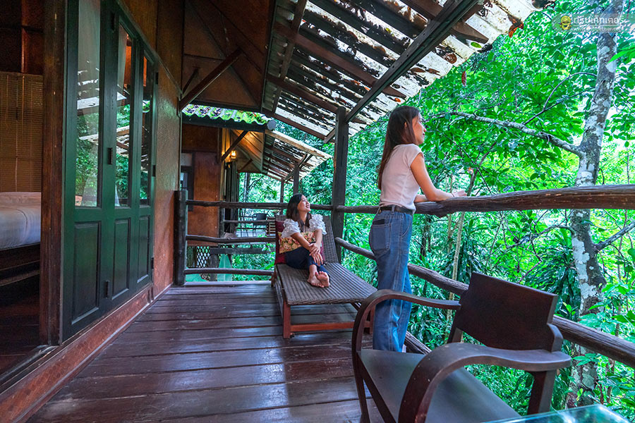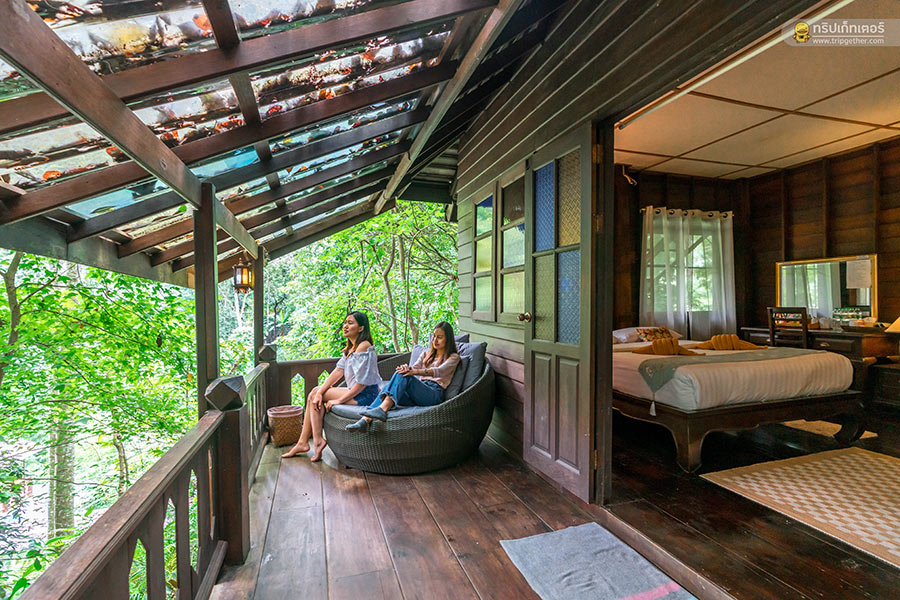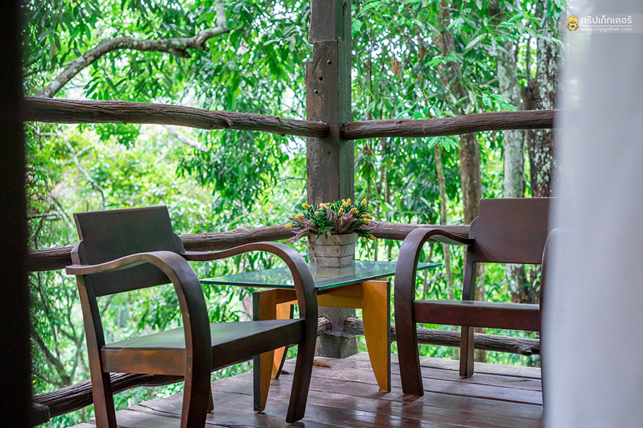 หน้าห้องก็มีระเบียงกว้างให้นั่งชิลล์ๆ ชมนกชมไม้