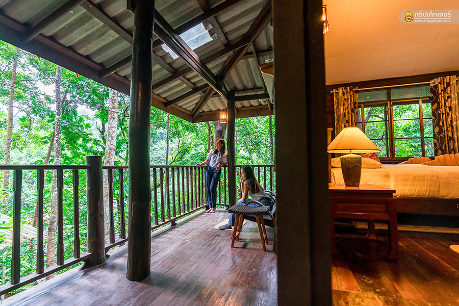 เริ่มต้นกันที่ห้องแรกและเป็นไฮไลท์ของที่นี่ Balcony ห้องพักในบ้านหลังใหญ่ที่ให้ความเป็นส่วนตัวและสะดวกสบาย สำหรับห้องนี้คุณสามารถเดินข้ามสะพานแขวนเหนือยอดไม้เชื่อมต่อกับทางเข้าห้องพักได้เลย หรือจะเดินลัดเลาะตามเนินเขาผ่านลำธารเข้ามาก็ได้เช่นกัน