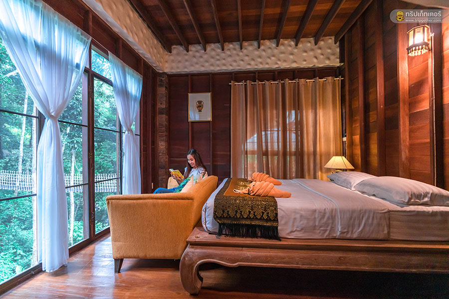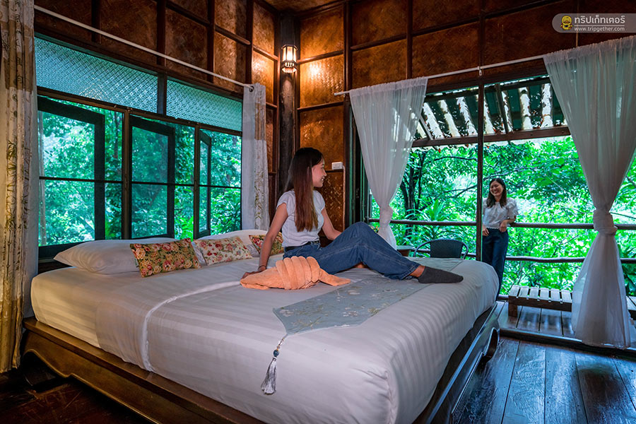 ภายในห้องพักตกแต่งในสไตล์บูติกที่เรียบง่าย และครบครันด้วยสิ่งอำนวยความสะดวก มีที่นอนขนาดใหญ่ โซฟามุมนั่งพักผ่อน ตู้เย็น โต๊ะเครื่องแป้ง ร่ม ไฟฉาย ไดร์เป่าผม และมุม Snack Bar ให้คุณได้อร่อยกับขนมขบเคี้ยวที่ทางรีสอร์ทได้จัดเตรียมไว้ให้ฟรีๆ แต่ที่นี่จะไม่มีเครื่องปรับอากาศ และโทรทัศน์ในห้องพัก เพราะธรรมชาติรอบๆ ที่นี่น่าสนใจกว่านอนดูทีวีเยอะเลย