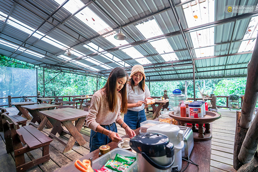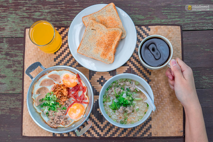 สำหรับอาหารเช้าที่นี่จะเปิดตั้งแต่ 8.00 – 10.00 น. เสิร์ฟเป็นข้าวต้มหมู ไข่กระทะ ชา กาแฟ และขนมปังปิ้ง