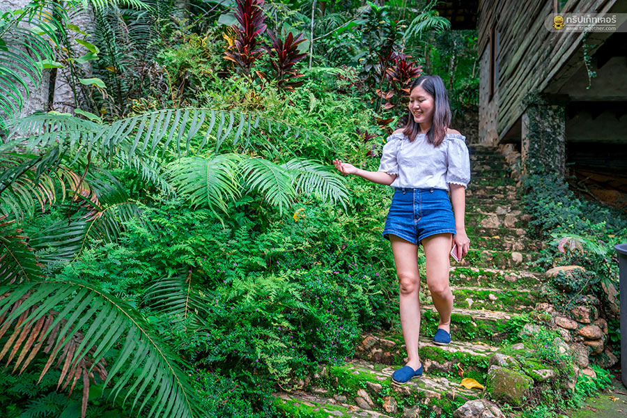 ทางเดินไปยังจุดต่างๆ ในรีสอร์ทสดชื่นสบายตาไปด้วยสีเขียวจากต้นไม้ เฟิร์น มอส