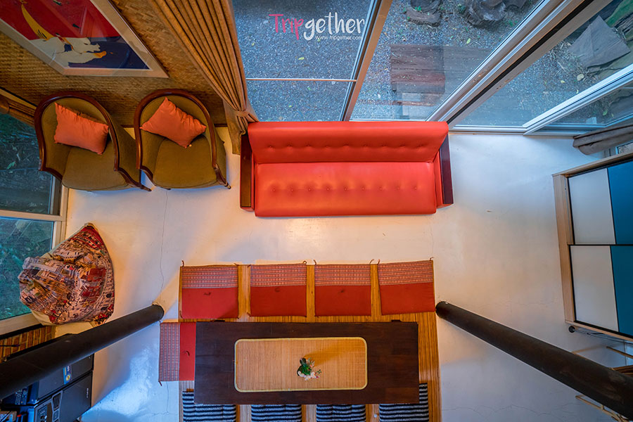 ส่วนบริเวณชั้นบนจะเป็นห้องพักมีที่นอนเรียงยาวอยู่ภายในห้องเดียวกัน ให้คุณได้พักผ่อนกันแบบใกล้ชิด แต่ภายในห้องพักจะไม่มีทีวี
