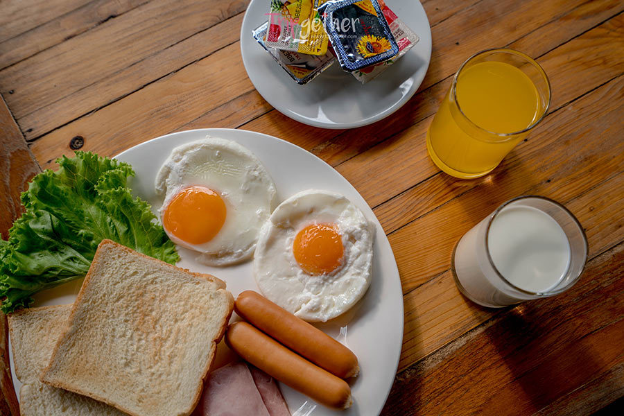 ส่วนมื้อเช้าก็มีให้เลือกทั้ง American Breakfast และข้าวต้มหมู