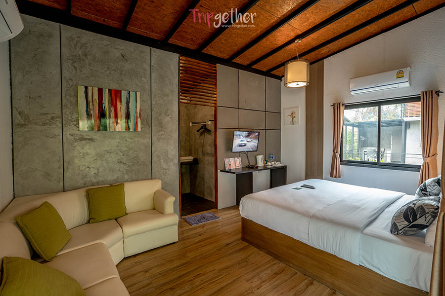 นอกจากพื้นที่ส่วนกลางสุดชิลล์แล้ว ภายในห้องพักของที่นี่ก็ตกแต่งได้อย่างน่านอนทีเดียว มีห้องพักให้เลือกถึง 4 แบบด้วยกันคือ ห้อง Deluxe ห้องพักสไตล์เรือนแถวจำนวน 10 ห้อง ด้านหน้าห้องพักทุกห้องจะมีระเบียงส่วนตัว มีเก้าอี้ให้นั่งพักผ่อนชมวิวสวน