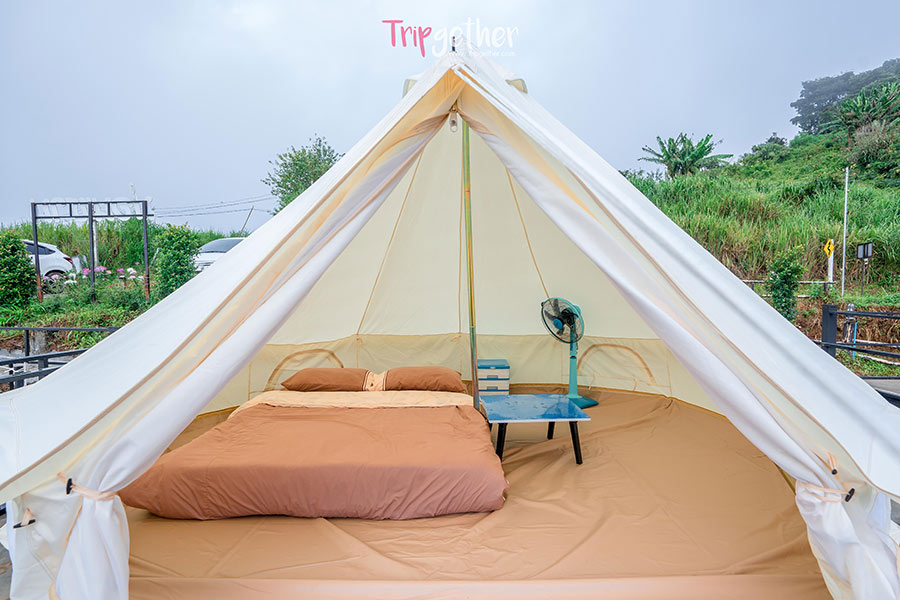 บรรยากาศภายในเต็นท์นอนวีไอพี ก็มีชุดที่นอนอย่างดี ที่รับรองว่าประสบการณ์นอนเต็นท์ครั้งนี้ต้องถูกใจคุณอย่างแน่นอน